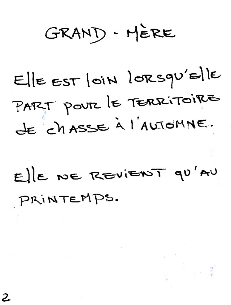 4. Établir des liens entre l’appartenance à 1 ou des groupes — Ouvrir une discussion sur les problèmes d’éloignement (p. ex. : la grand-mère est loin de son petit-fils lorsqu’elle part pour le territoire de chasse à l’automne et n’en revient qu’au printemps). Choisir un membre de sa famille qui nous ressemble ou dont on s’ennuie ; écrire le lien de parenté (on peut aussi écrire le prénom), page 2. Écrire pourquoi on a choisi cette personne.