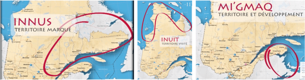 10. Écrire au tableau — Associer une couleur à chaque nation (p. ex. : pour les Innus, on choisira le vert pour représenter la terre ; pour les Mi’gmaqs, le bleu pour la mer ; pour les Inuits, le blanc pour la glace.