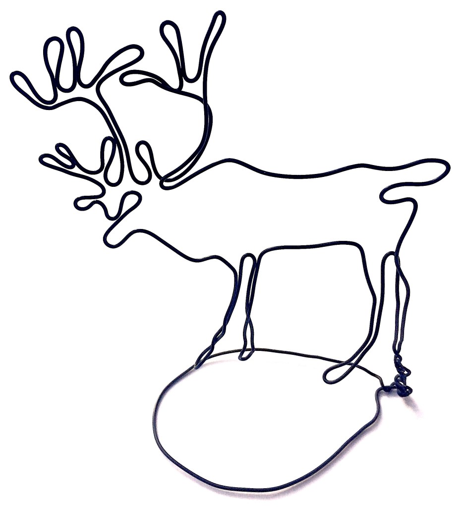 LE CARIBOU – Fil de fer et papier de soie, 3 x 4 x 3 pouces.