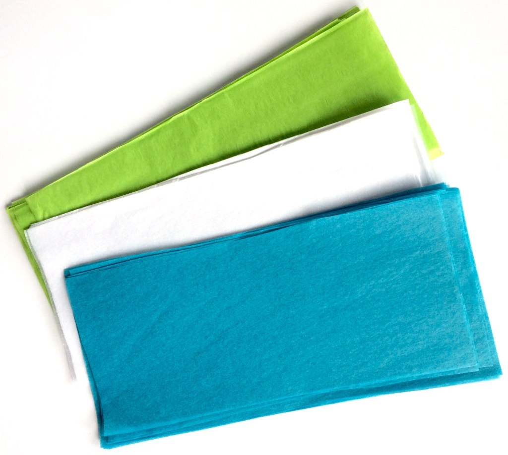 5. Papier de soie, format env. 7 po x 4 po : bleu, vert et blanc (1 par élève)
