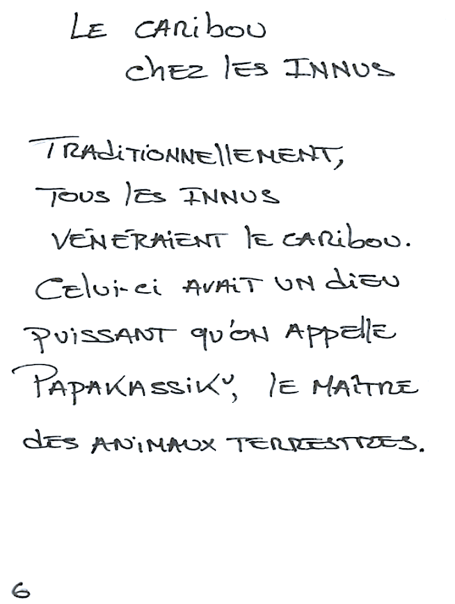 12. Communiquer le résultat de sa recherche — Écrire le nom de la caractéristique culturelle apparaissant sur l’image, en haut de la page 6. Utiliser la même formule (p. ex. : Le caribou chez les Innus).