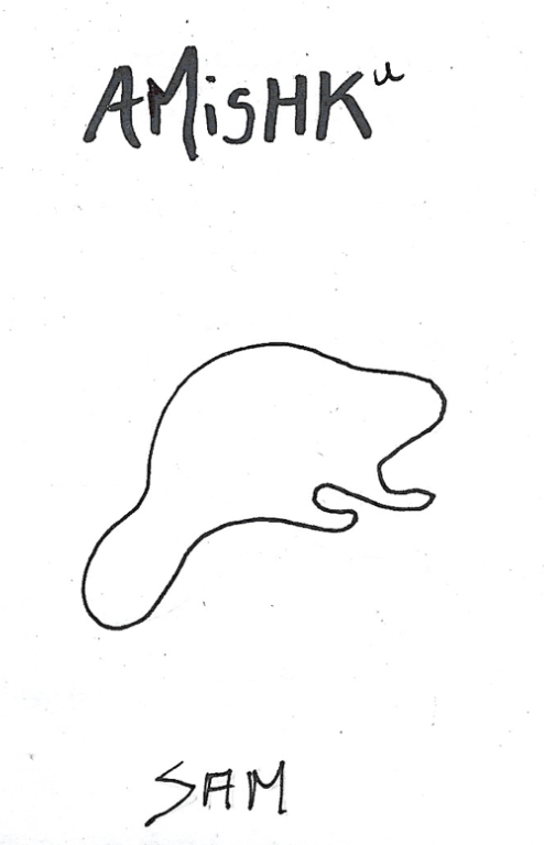 PAGE COUVERTURE : écrire son nom en bas, au centre ; dessiner ou coller une photocopie d’un animal choisi en fonction de son tempérament ; écrire le nom de l’animal en langue innue en haut, au centre :
