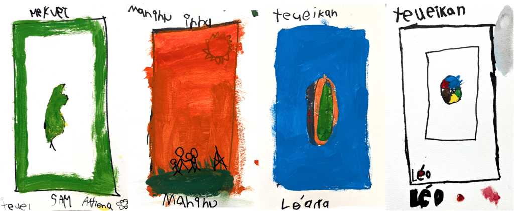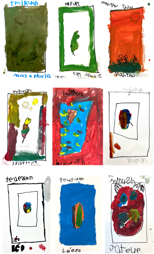 16. Écrire le nom de l’élément choisi en langue innue au crayon-feutre noir, en haut de sa réalisation (à l’extérieur du rectangle). Voir la page couverture.