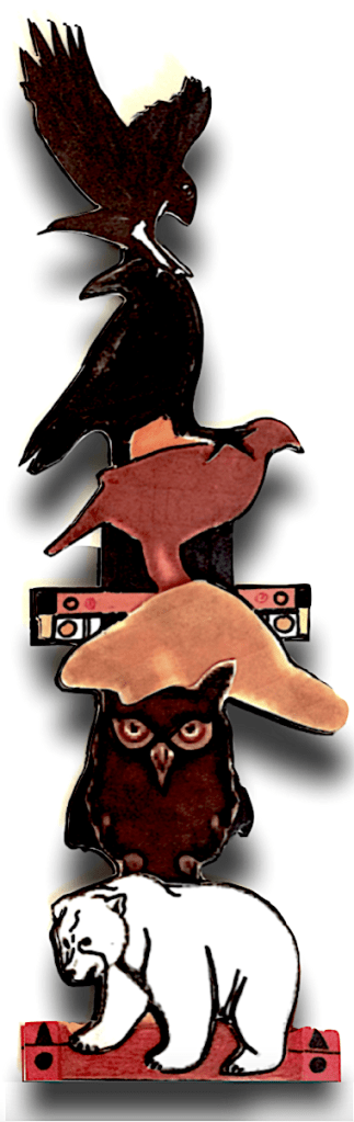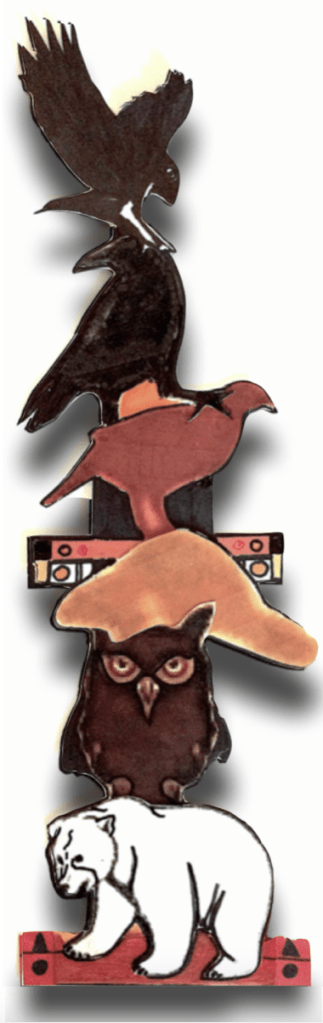 Totem : représentation spirituelle d’une personne ou de tout un groupe à travers les animaux. L’un d’eux est son animal totémique principal, celui qui est toujours avec lui. Les autres apparaissent et disparaissent de sa conscience à différentes étapes de sa vie.