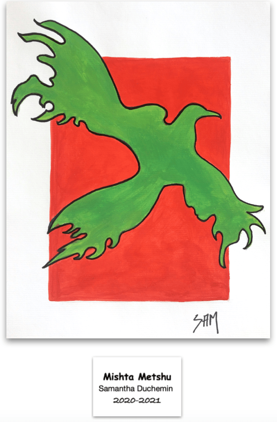 MISHTA METSHU – Gouache sur papier aquarelle, 8,5 x 11 pouces.