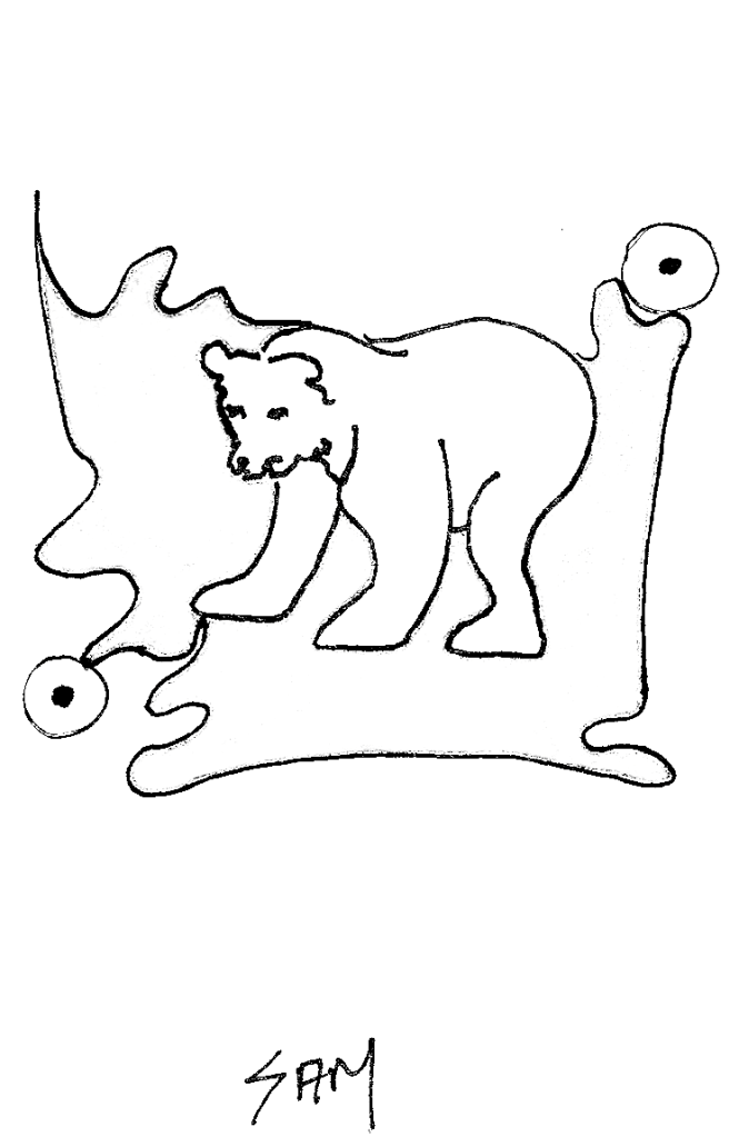 L’OURS – Gouache sur papier aquarelle, 8,5 x 11 pouces.