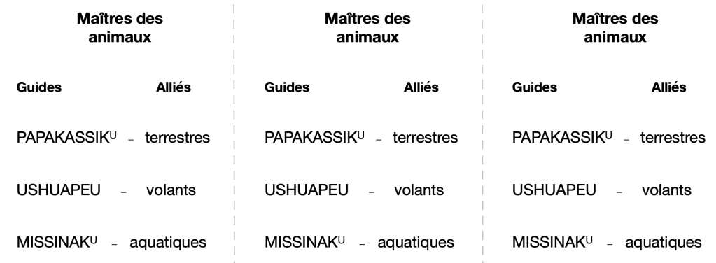 7. Ouvrir une discussion sur les maîtres des animaux et de leurs alliés selon la culture innue. Coller une photocopie sur les maîtres des animaux et leurs alliés, page 2.