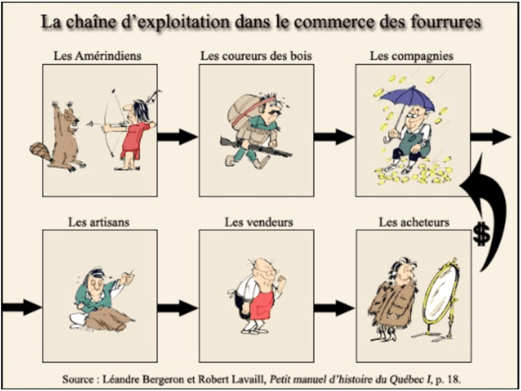 7. Récapitulation — Quelles sont les ressemblances et les différences entre hier et aujourd’hui ? Consulter le graphique sur la chaîne d’exploitation dans le commerce des fourrures (sur le TBI).