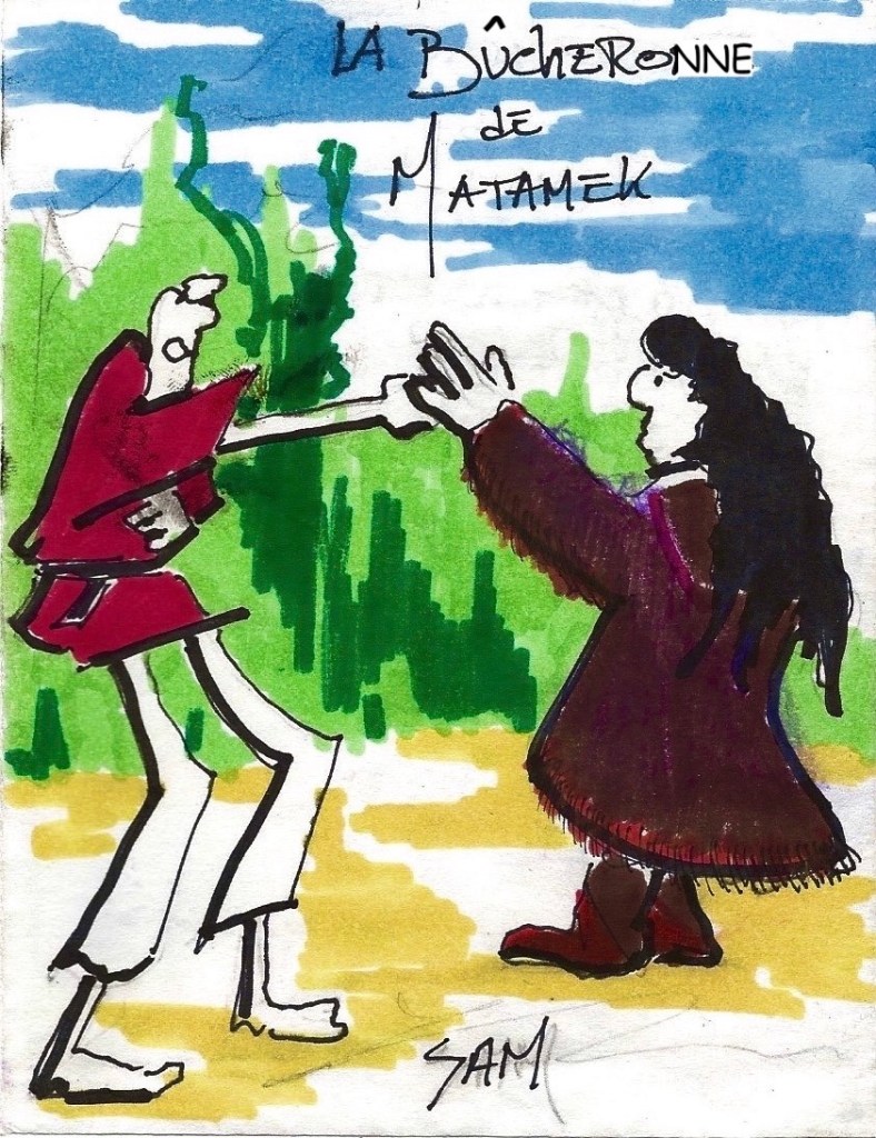 LA BÛCHERONNE DE MATAMEK – Gouache sur papier aquarelle, 8,5 x 11 pouces.