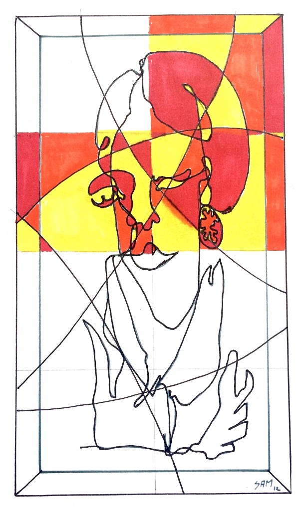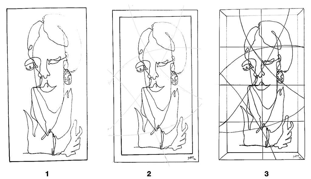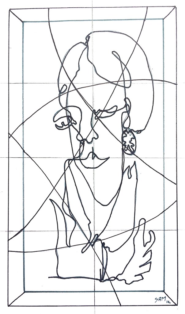TROIS HUITIÈMES – Dessin à l’aveugle sur carton, 8,5 x 11 pouces.