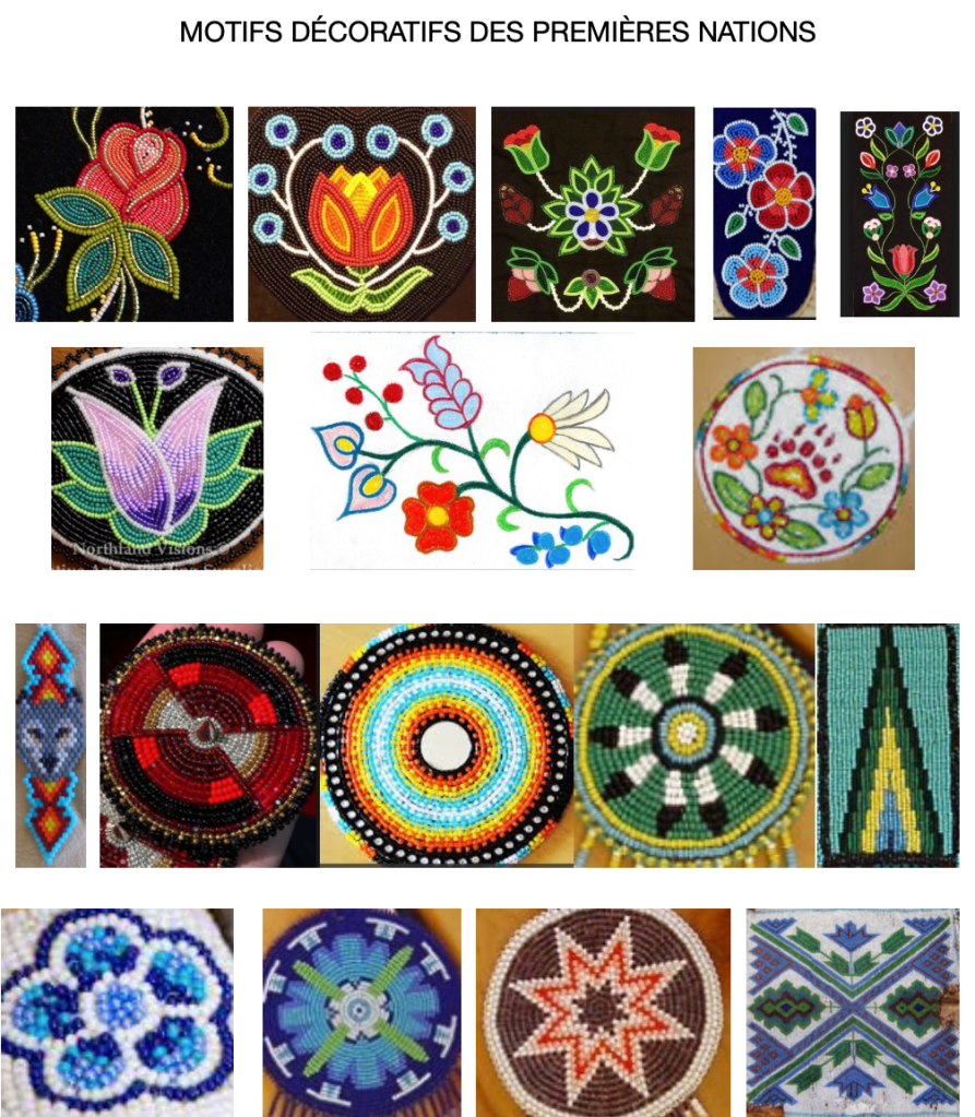 8. Consulter les motifs décoratifs des Premières Nations (sur le TBI). Présentation du document sur la signification des symboles selon la culture des Premières Nations. Que signifie « tracer à main levée » ? C’est une technique de dessin qui se réalise à la main, sans outil de guidage ou instrument de mesure comme une règle ou un compas. À l’aide d’un document sur la signification des symboles, choisir et dessiner des symboles attribués aux arbres, animaux, couleurs, pierres, plumes et motifs, page 6.