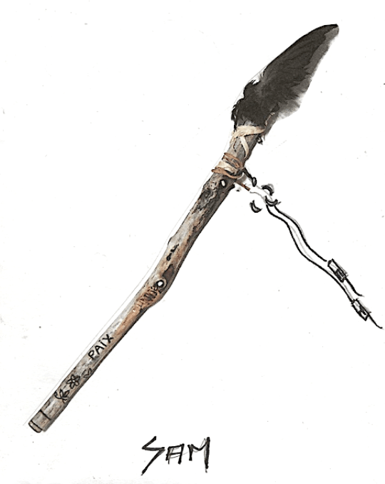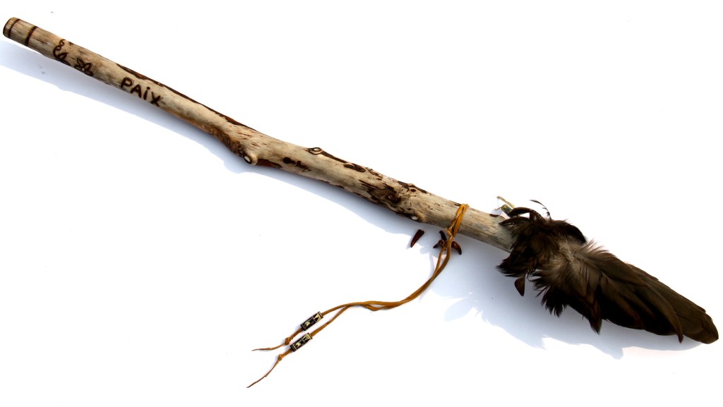 Bâton de parole ou oratoire : outil servant à réguler la parole. La personne qui le fabrique doit choisir ce qui l’aidera et aidera aussi ceux avec qui il se réunira.