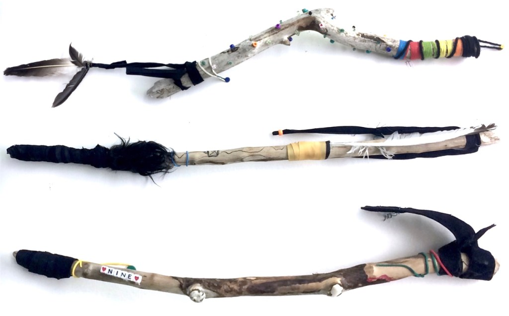 3. Écrire les significations du bâton sur une petite carte en vue d’une exposition OU placer tous les bâtons au mur de façon à former un bouquet.