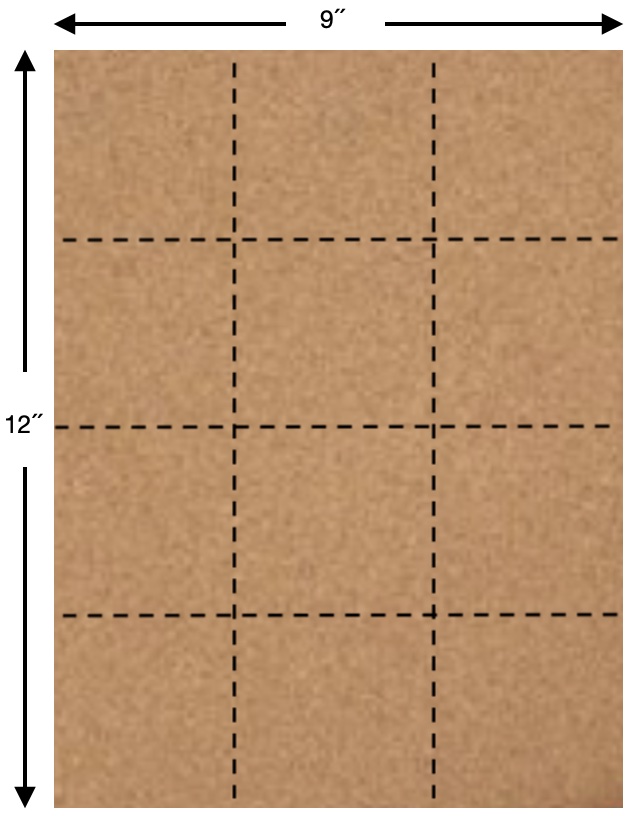 9. Papier sablé fin, 12 x 9 po, format 3 x 3 po (1 par élève)