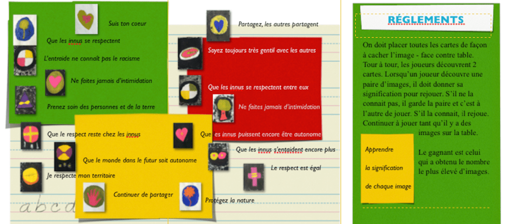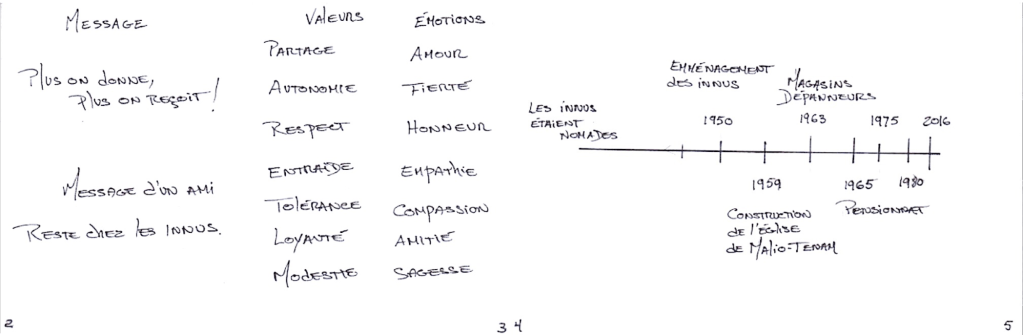 – la liste des valeurs en français et en langue innue.