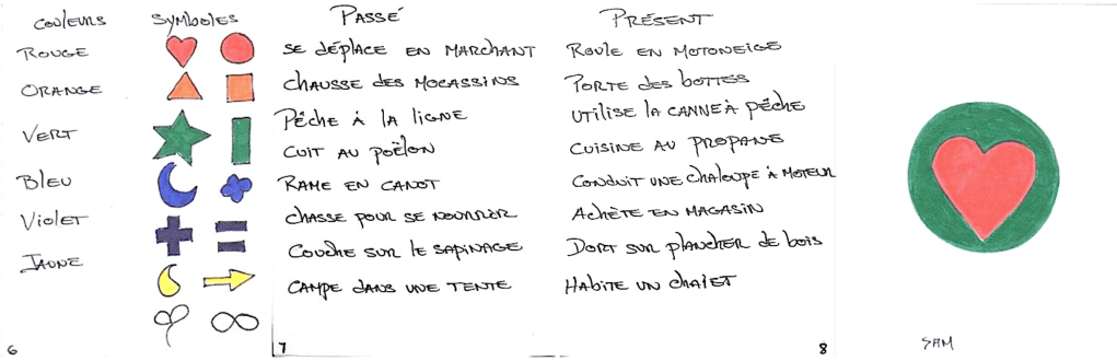 6. Cueillir et traiter l’information — À l’aide d’une ligne du temps, trouver des éléments de changement et de continuité à travers la culture innue. Retracer dans son carnet de traces, pages 4 et 5.