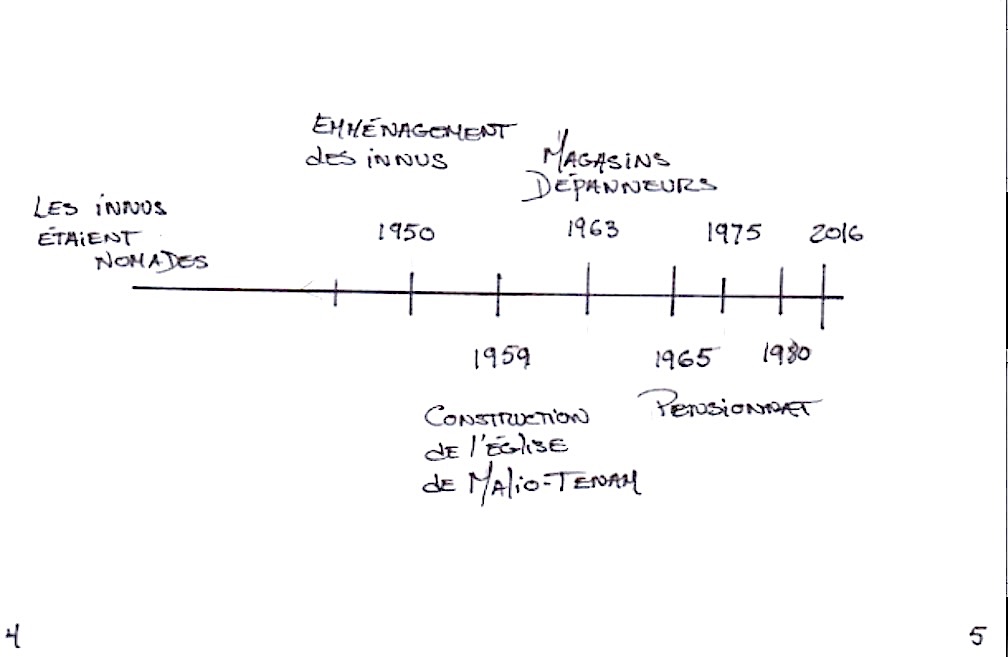 Page 4 : tracer une ligne du temps ; trouver des éléments de changement et de continuité à travers la culture innue.