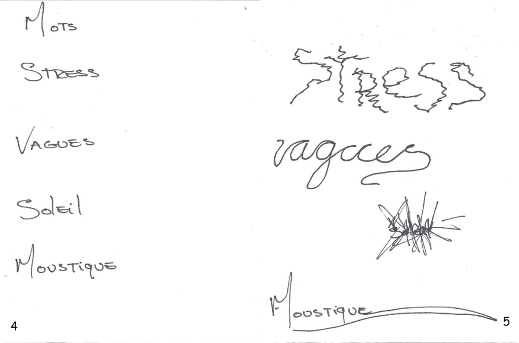 Page 5 : écrire les mots en utilisant une technique de dessin.