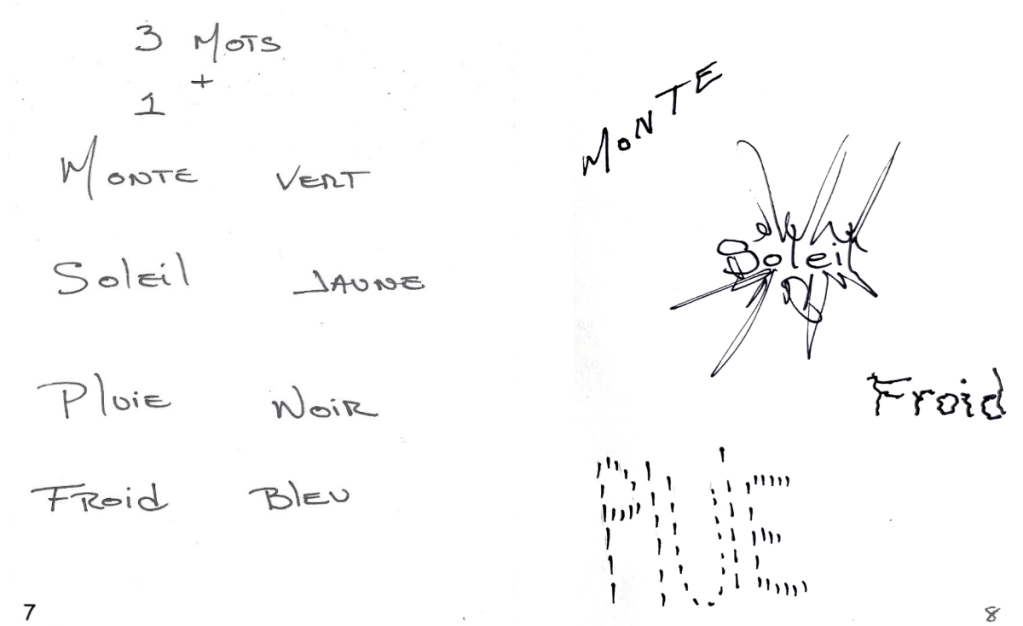 Page 7 : écrire quatre mots et une couleur pour chaque mot.