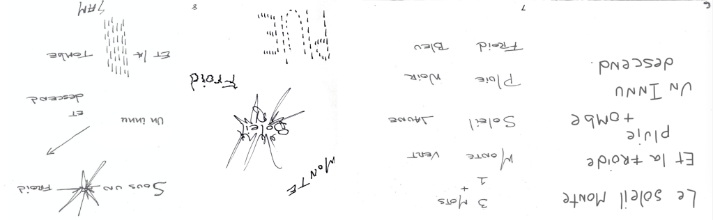 – L’élève réfléchit à la forme que prendra son haïku et le réalise sur la page couverture de son carnet de traces.