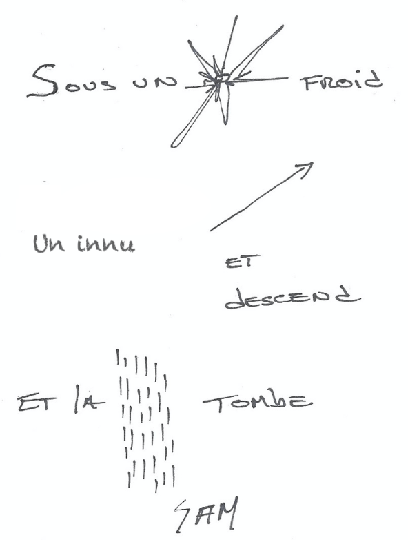 13. Consulter le tableau de lettrage pour styliser la première lettre du tercet (sur le TBI). Ajouter quelques éléments pertinents (p. ex. : tracer une ligne au-dessus du mot « Sous »). Retracer au crayon-feutre noir.