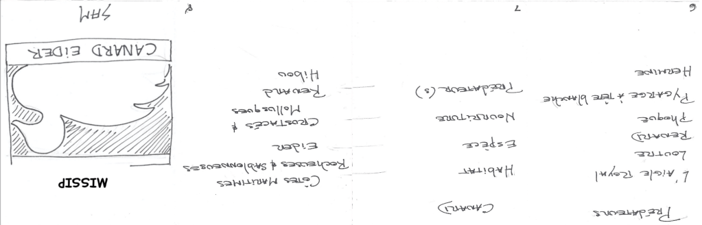 15. À l’aide d’un crayon à mine, graver le nom de l’animal dans l’espace réservé, tel que réalisé sur la page couverture (on peut choisir de limiter le nombre de lettres, par exemple : s’il s’agit du canard eider, n’écrire que CANARD). Placer dans un endroit sec.
