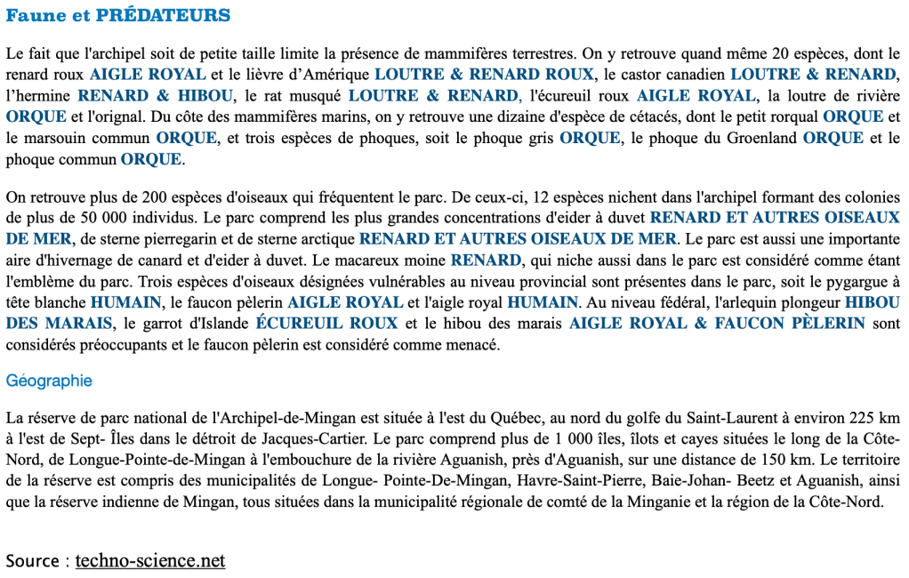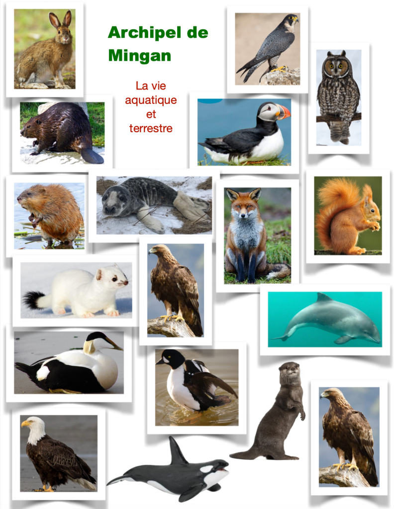 4. Cueillir l’information — Consulter la carte géographique et localiser l’Archipel-de-Mingan (sur le TBI). Consulter le document sur la faune et identifier les animaux aquatiques et terrestres qui la peuplent (sur le TBI). Écrire le nom de quelques animaux à la page 2 du carnet de traces.