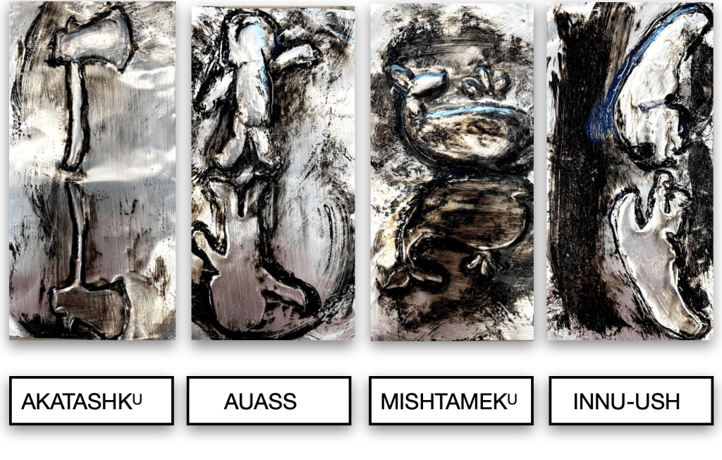 Réaliser une gravure sur un élément culturel présent dans la vie quotidienne des Innus. Réaliser une suite logique en collectif.