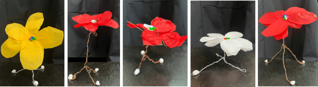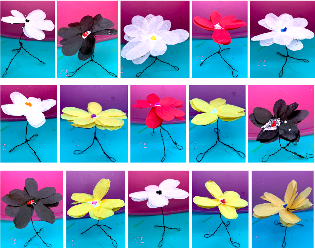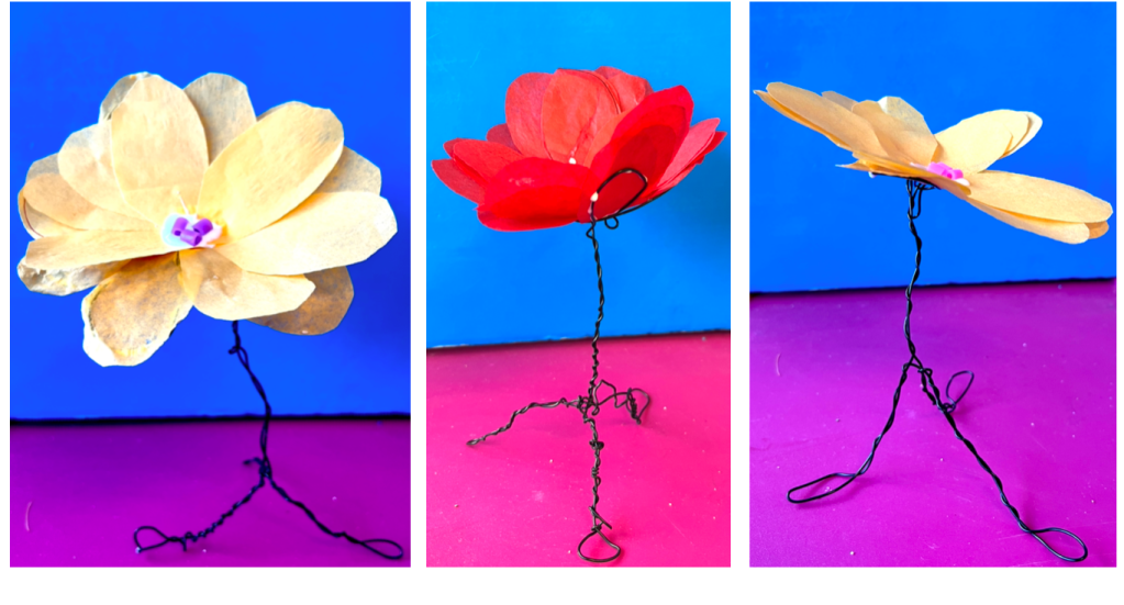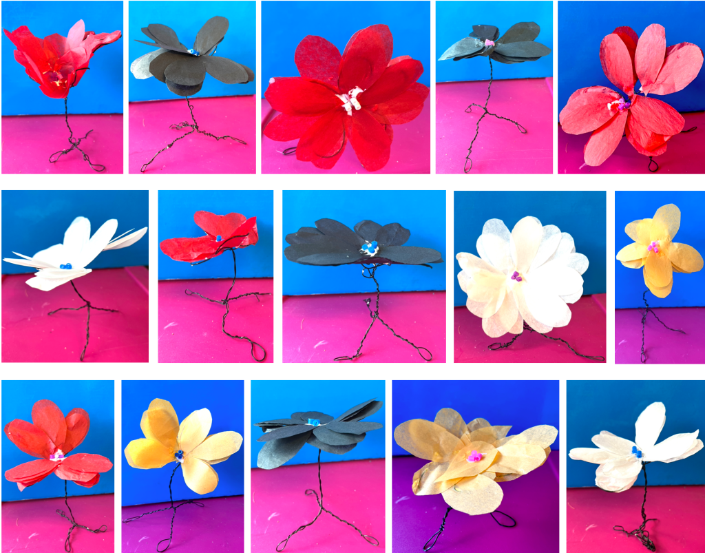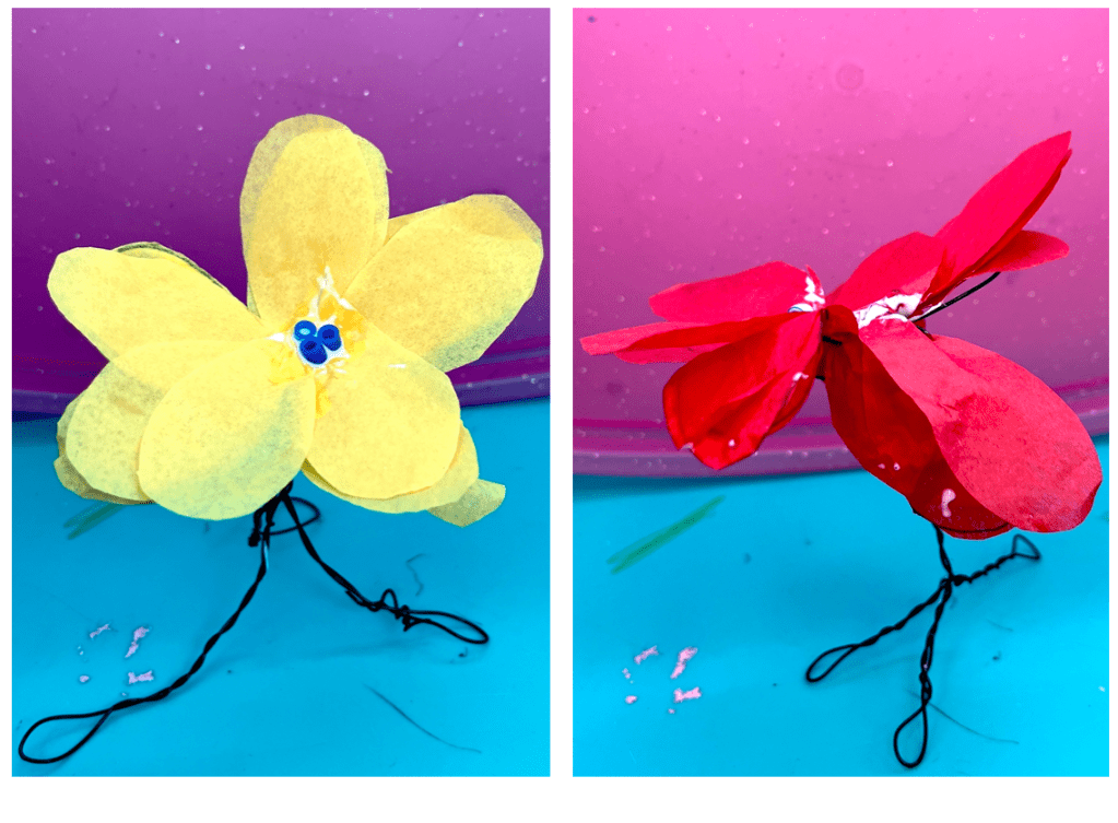 Les fleurs par le papier de soie et le fil de fer