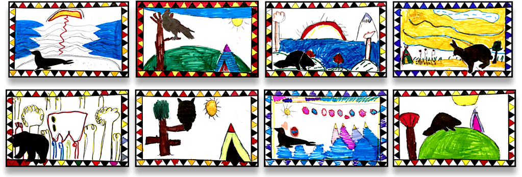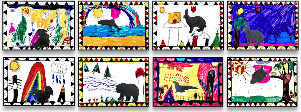 Réaliser une scène de vie innue dans laquelle on retrouve un animal vivant sur le territoire.