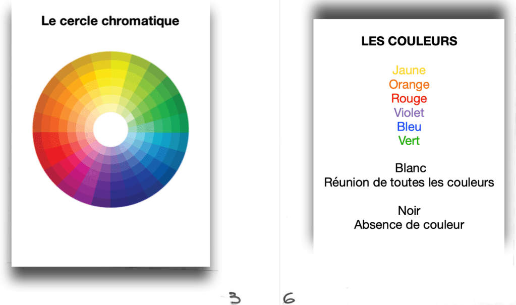 Page 6 : coller une photocopie d’une liste de quelques couleurs.