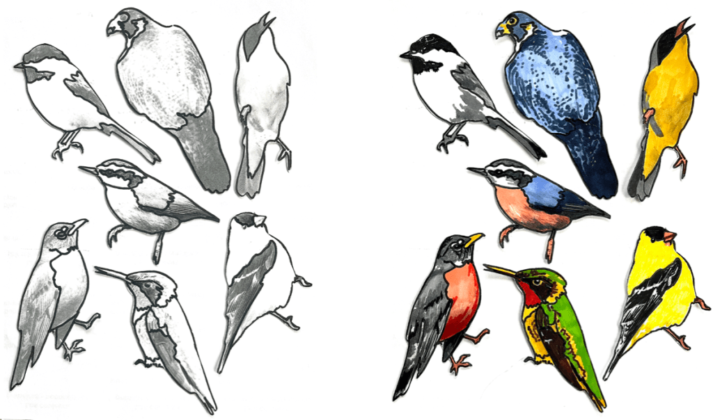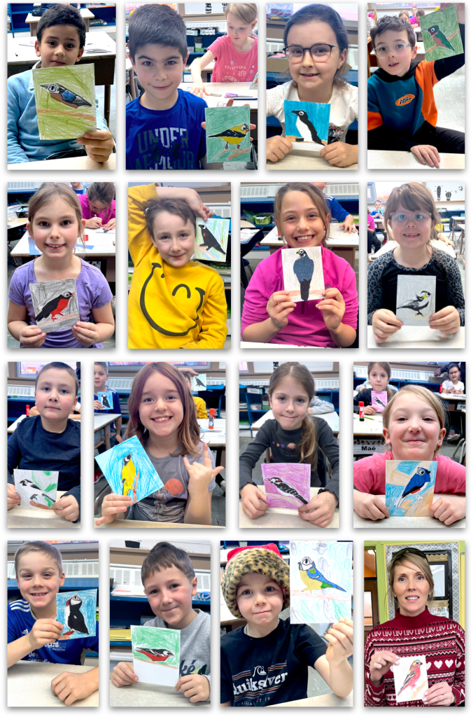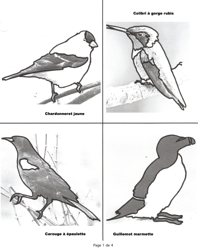 – les oiseaux du Québec en noir et blanc (avec lignes de contour), format env. 4 x 5,5 po (1 par élève)