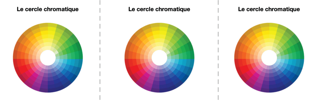 Cercle chromatique : roue des couleurs répertoriant les nuances des couleurs primaires et leurs mélanges.