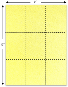 4. Papier construction 9 x 12 po, jaune, rouge, bleu, orange, vert, violet, noir et blanc, coupé en 9, soit : env. 3 x 4 po (1 par élève)