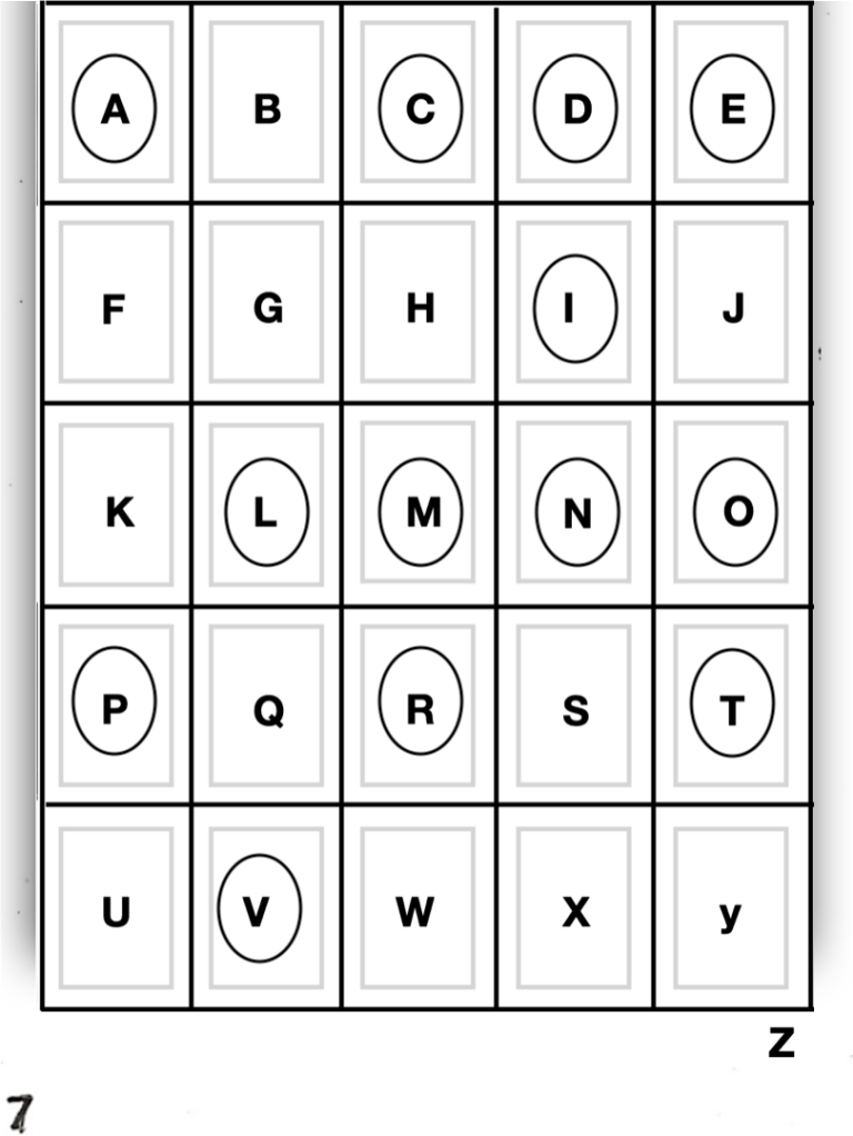 13. Coller une photocopie des lettres de l’alphabet en noir et blanc (petit format), page 7 et à l’aide de la version finale de sa phrase, entourer les lettres nécessaires à sa réalisation.