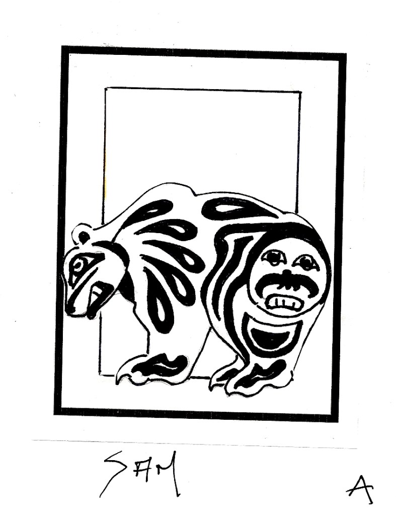 A – ANCÊTRE – Crayon-feutre sur carton, 8,5 x 11 pouces.
