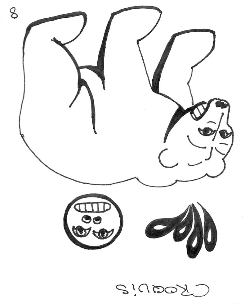 10. Coller une photocopie de dessins issus des Premières Nations, page 6. Qu’est-ce qu’une image mentale ? Que signifie « tracer à main levée » ? C’est une technique de dessin qui se réalise à la main, sans outil de guidage ou instrument de mesure comme une règle ou un compas. Démonstration — Réaliser un dessin simple pour illustrer le mot relié à sa lettre (p. ex. : un ours pour illustrer le mot ancêtre et quelques petits croquis tirés de la page 6), page 8.