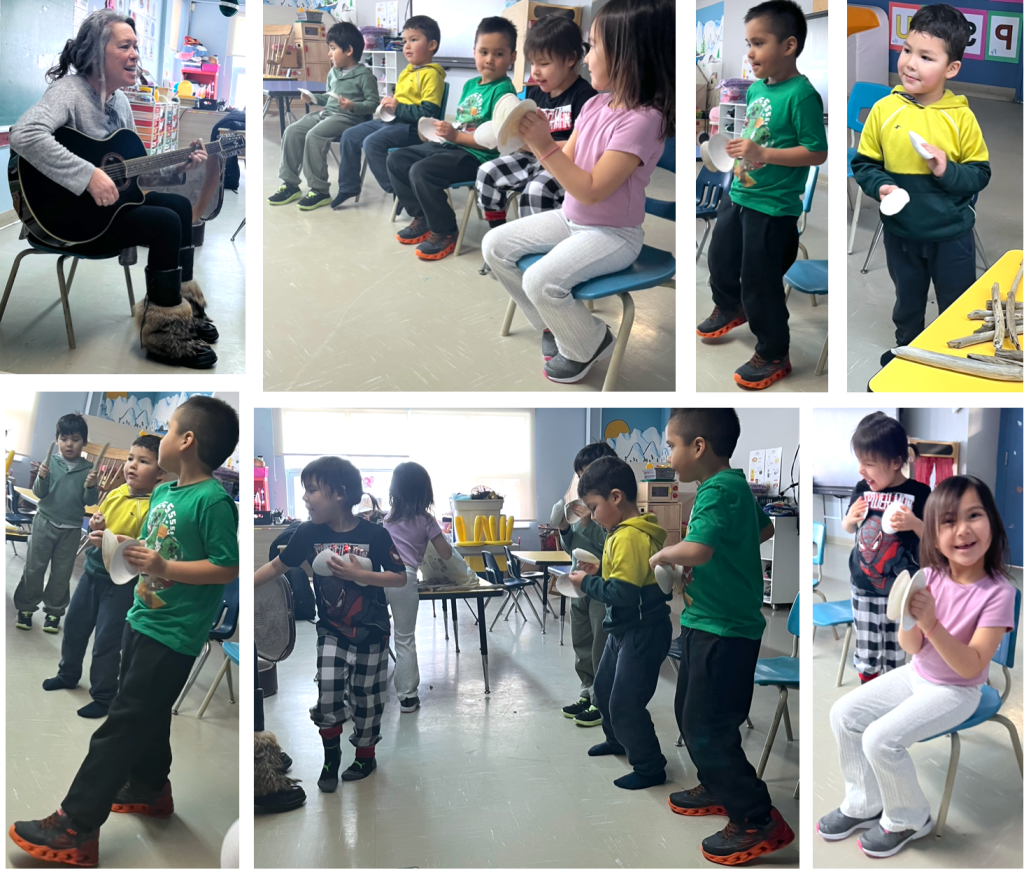 Apprendre et chanter les paroles d’une comptine populaire, jouer avec les rimes et le rythme sur une mélodie en utilisant des objets trouvés sur le territoire des Innus.