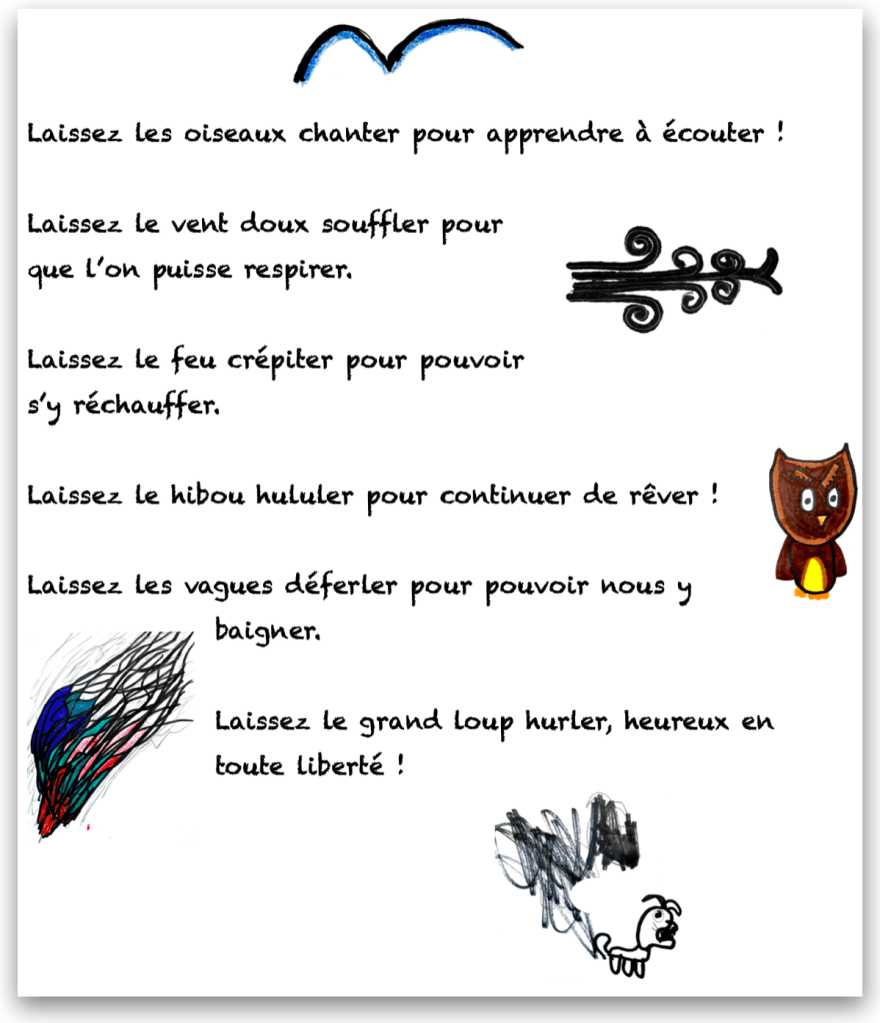9. Compléter les phrases ensemble au tableau (p. ex. : Laissez les oiseaux chanter… pour apprendre à écouter). Écrire la deuxième partie de sa phrase, page 5.