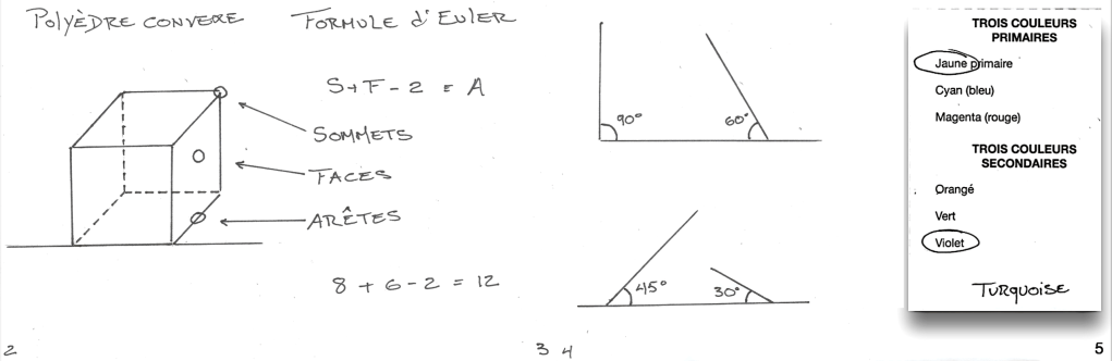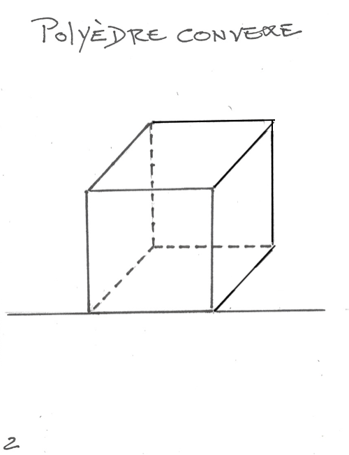 Page 2 : écrire « Polyèdre convexe » en haut de la page ; dessiner un cube ; indiquer les angles.