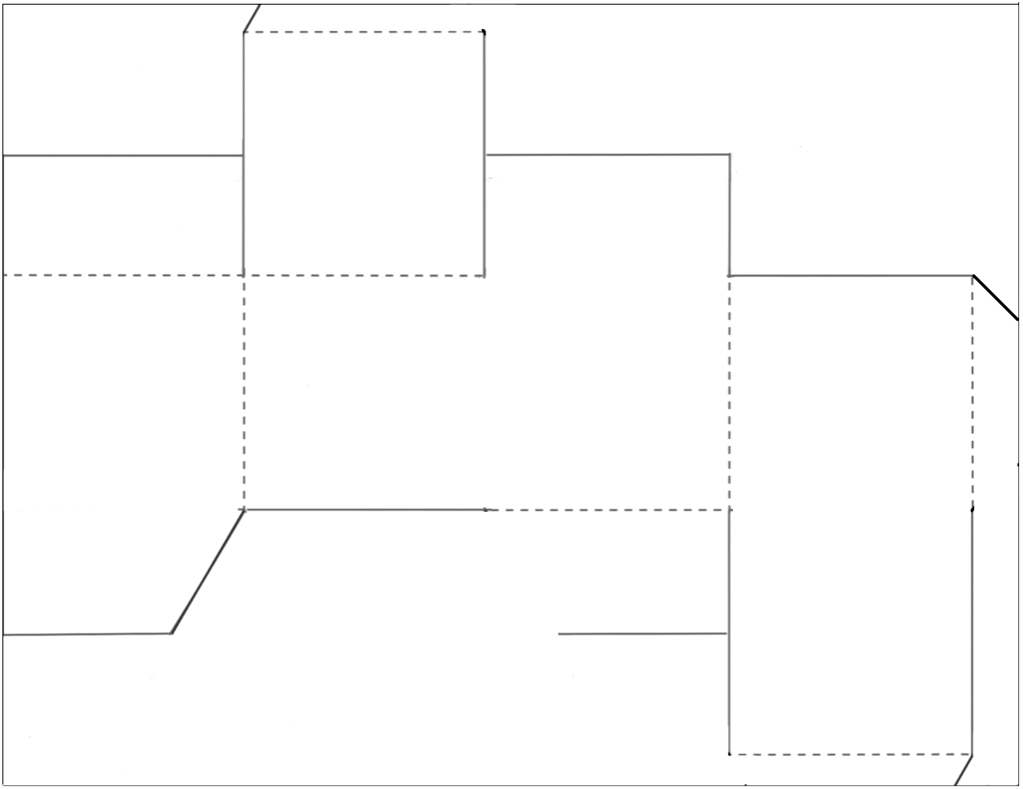 13. Terminer le schéma d’une boite — À l’aide du schéma des pages 7 et 8, tracer les lignes manquantes au crayon à mine sur un schéma inachevé : lignes pointillées et autres. Découper sur les lignes. Ne pas découper sur les lignes pointillées.