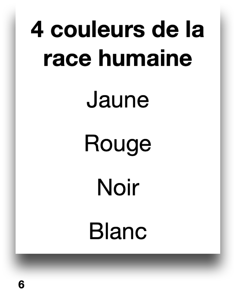 – une photocopie de la liste des quatre couleurs de la race humaine