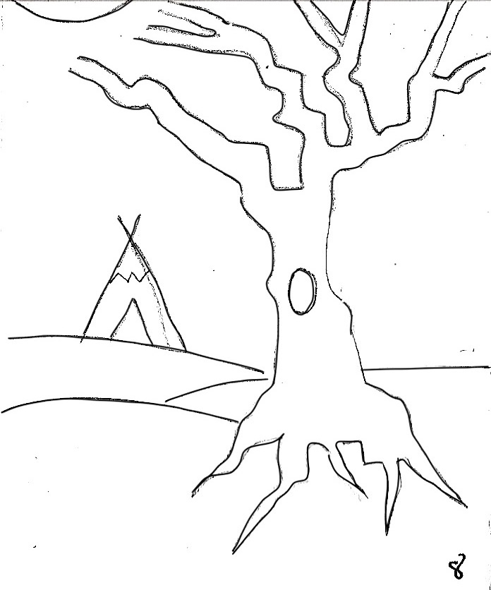 10. Qu’est-ce qu’une ligne brisée ? Et une ligne courbe ? Dessiner au tableau plusieurs éléments que l’on retrouve dans un campement innu en utilisant les lignes courbes et brisées (p. ex. : un tipi, un arbre, la mer, le soleil, une plage, le sol, une fleur, etc.).
