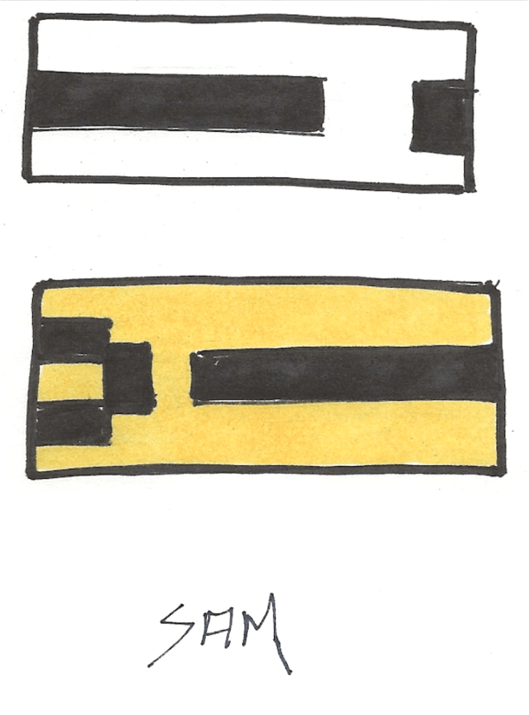 LE NOMBRE 2 – Carton noir sur carton jaune et blanc, 3 x 44 pouces.