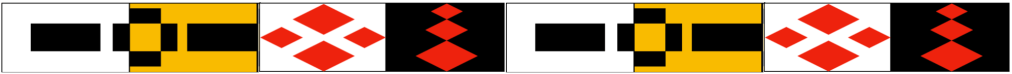 Préparer des bandes de papier construction : blanc, noir, rouge, jaune ocre (ou doré), format 3 x 11 po (5 bandes par élève).