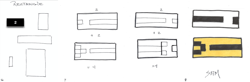 Page 7 : tracer deux rectangles ; dessiner des croquis (assemblage des formes).