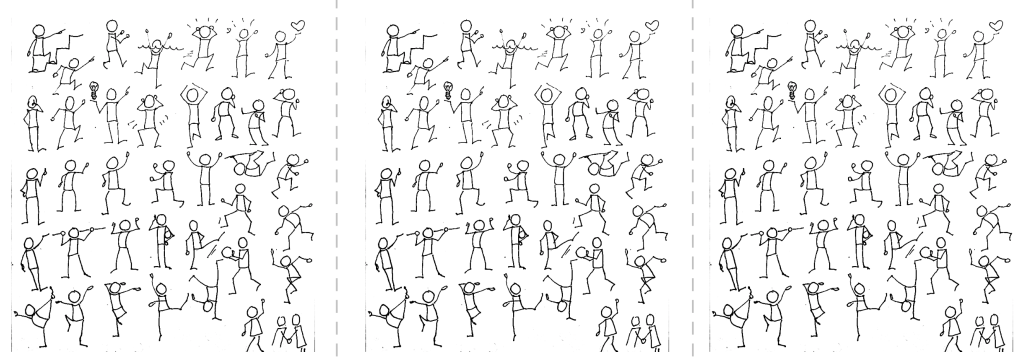 – une photocopie d’un tableau de dessins de bonhommes allumettes