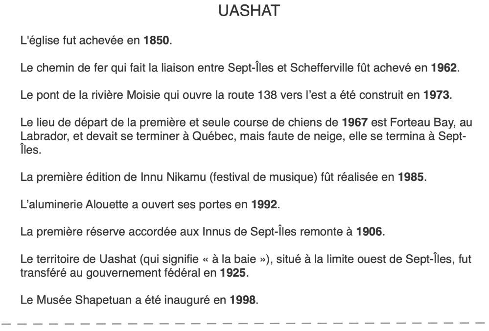 – le document sur les événements marquants de Uashat.