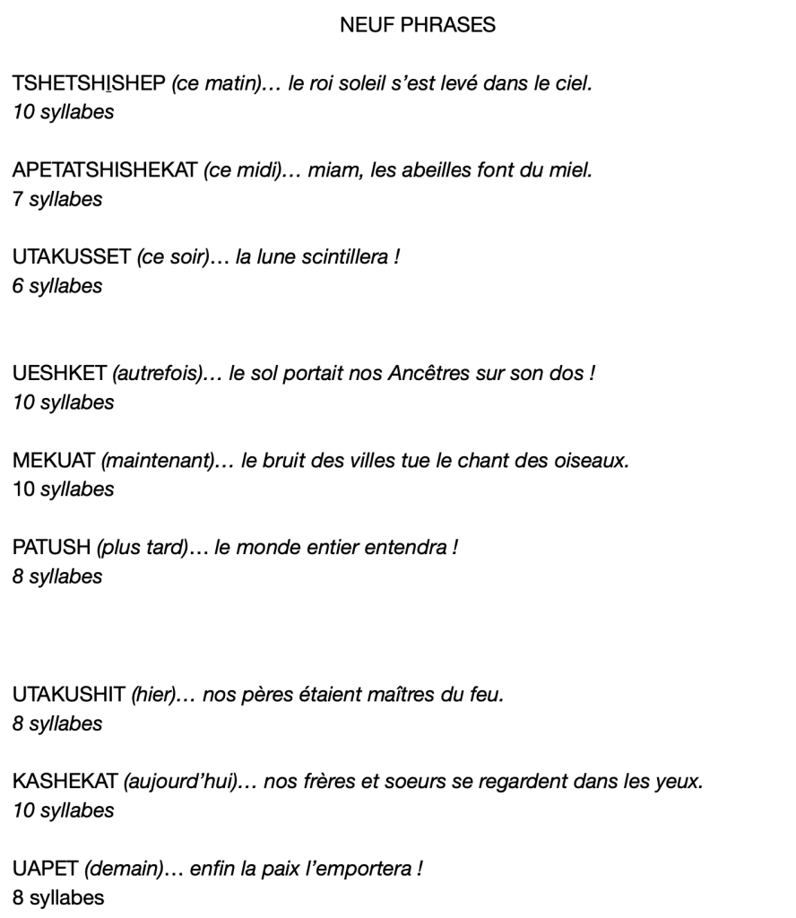 – une photocopie d’une liste d’adverbes en français et en innu-aimun