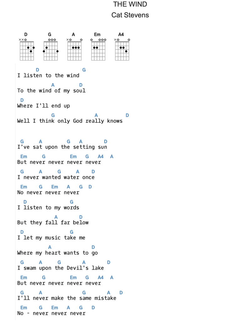13. Discuter sur l’importance d’écouter les autres. Sur la musique de la chanson de Cat Stevens, The Wind, chaque élève chante ou déclame sa phrase. Chanter le refrain tous ensemble.